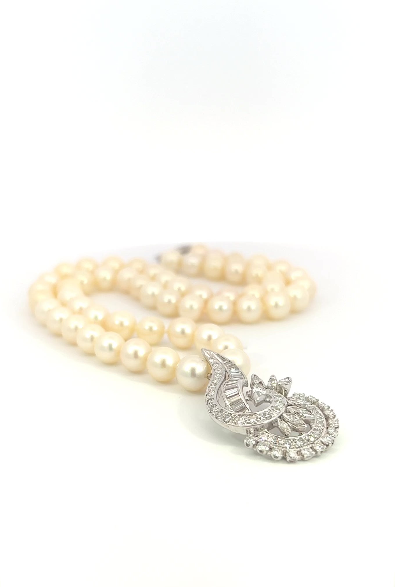 14K White Gold Akoya Pearl & Diamond Estate Necklace