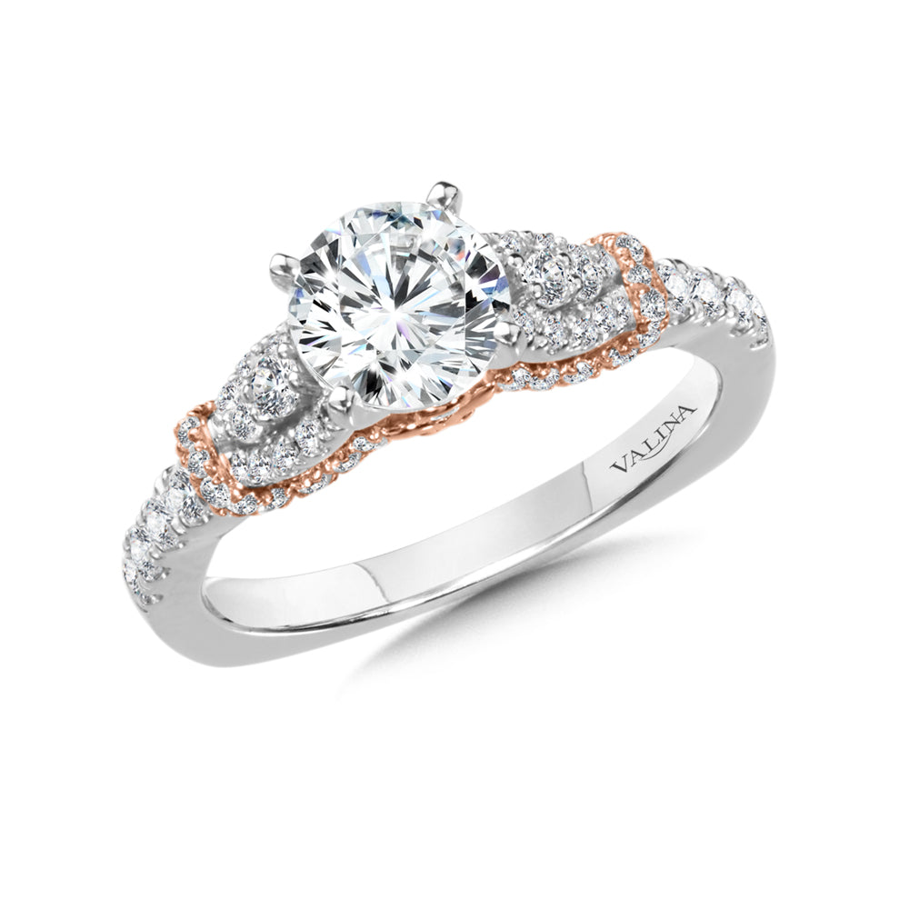 14K White & Rose Gold Diamond Halo Engagement Ring