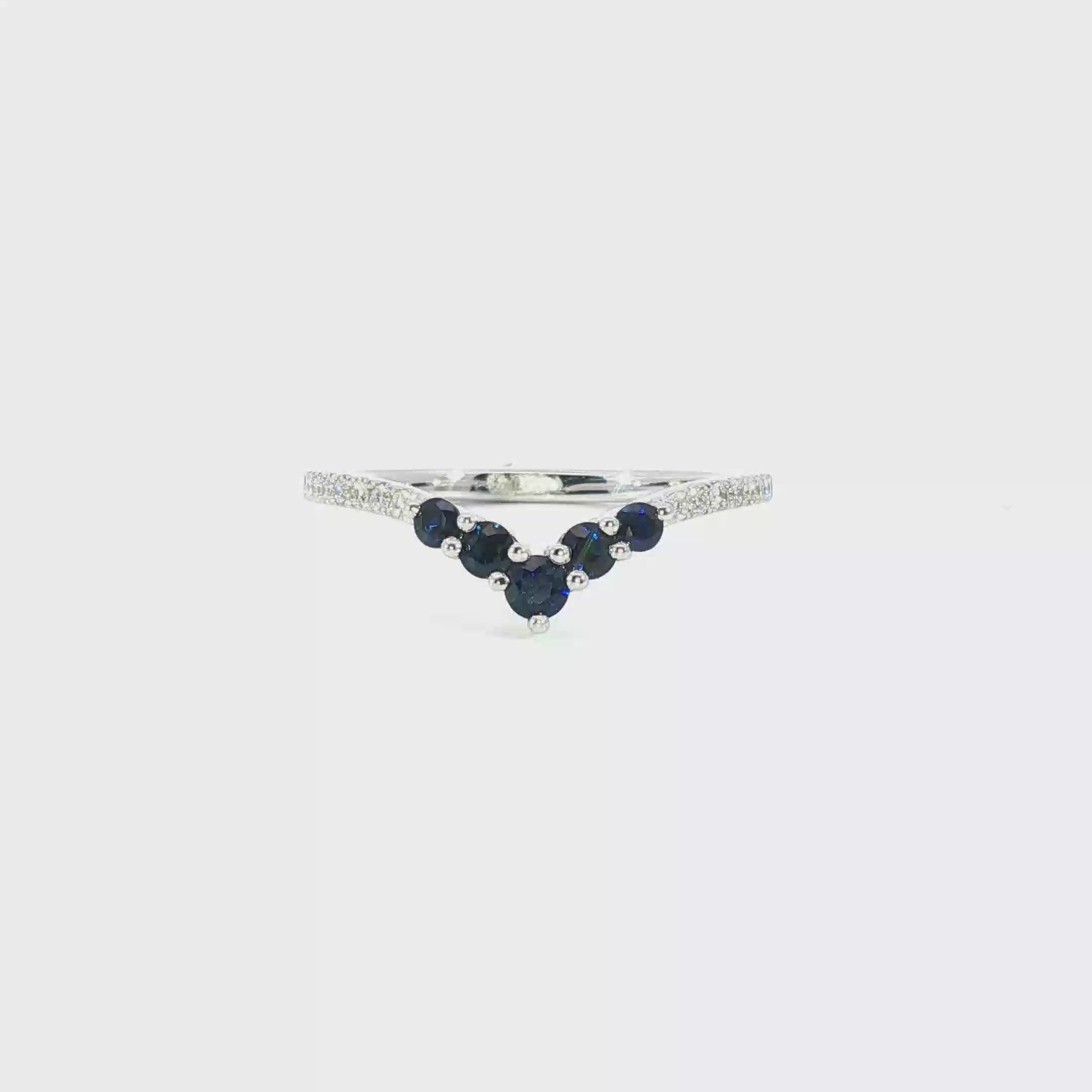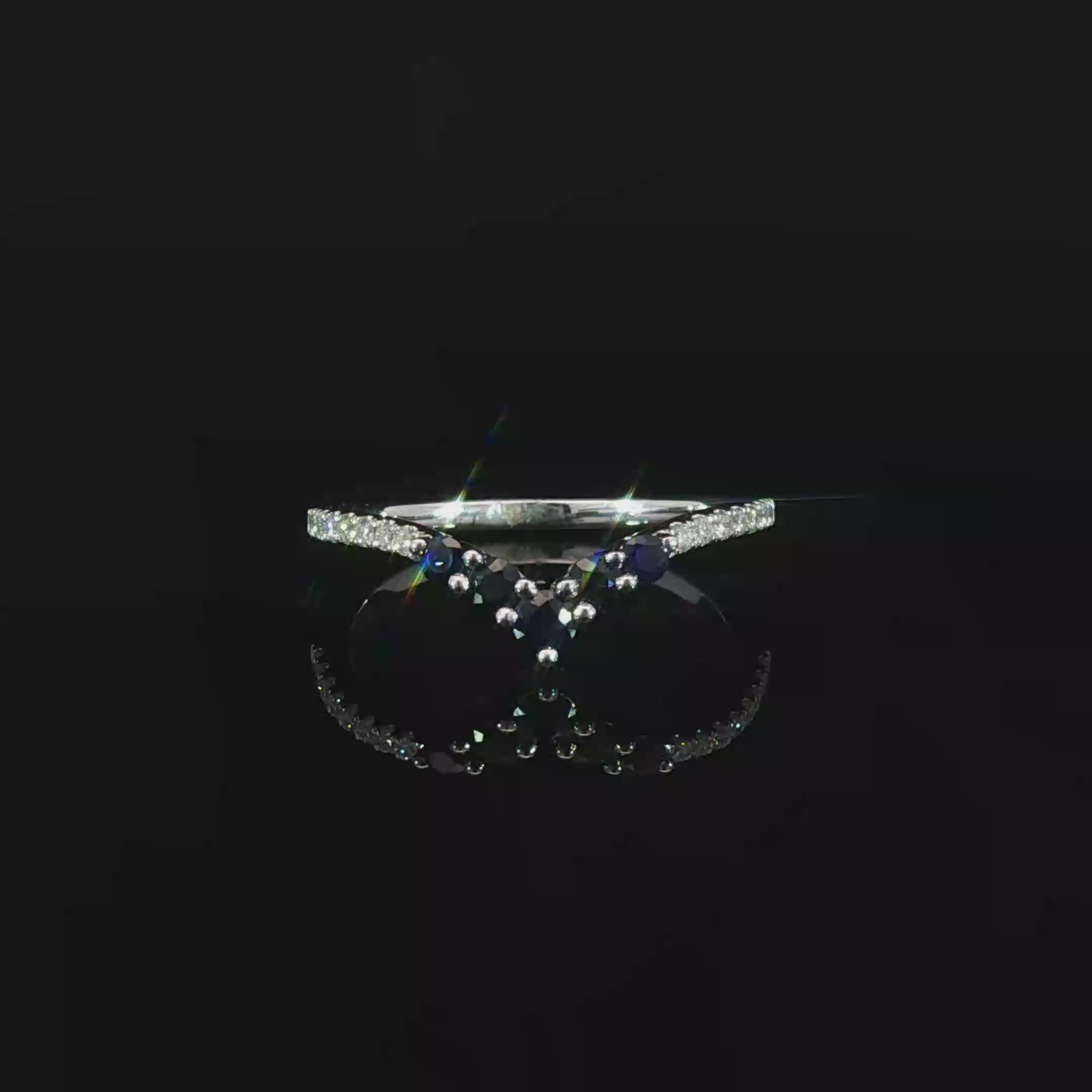 14K White Gold Ring with Deep Blue Sapphire Accents